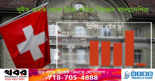 এতে বলা হয়েছে, সুইস ব্যাংকে বাংলাদেশিদের আমানতের হার ২০২১ সালের তুলনায় ৯৩ দশমিক ৭ শতাংশ কমেছে। ২০২২ সালের ডিসেম্বরে সুইস ব্যাংকে বাংলাদেশিদের আমানত দাঁড়িয়েছে ৫ কোটি ৫২ লাখ ফ্রাঁ। প্রতি ফ্রাঁ ১২১ টাকা ধরলে এর পরিমাণ দাঁড়ায় প্রায় ৬৬৮ কোটি টাকা।