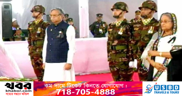 এরপর আওয়ামী লীগ সভাপতি হিসেবে দলের শীর্ষ নেতাদের নিয়ে দ্বিতীয় বার বঙ্গবন্ধুর প্রতিকৃতিতে শ্রদ্ধা নিবেদন করেন শেখ হাসিনা।