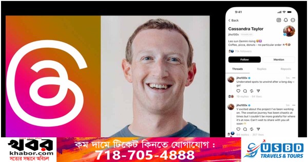 সামাজিক যোগাযোগমাধ্যম জায়ান্ট কোম্পানি মেটার নতুন চালু করা অ্যাপ থ্রেডস প্রথম দিনেই ৩ কোটি ব্যবহারকারী পেয়েছে। কোম্পানির প্রধান নির্বাহী কর্মকর্তা (সিইও) মার্ক জাকারবার্গ বৃহস্পতিবার এই তথ্য জানিয়েছেন।