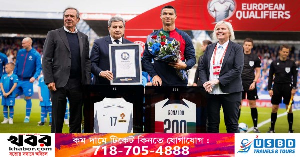 এদিন রোনালদোকে সম্মান জানায় গিনেস ওয়ার্ল্ড রেকর্ডস কর্তৃপক্ষ। আন্তর্জাতিক ফুটবল ক্যারিয়ারের ১৯ বছর ৩০৪ দিন বয়সে তিনি ২০০তম ম্যাচ খেলতে নেমেছিলেন। তার যাত্রাটা শুরু হয়েছিল ২০ বছর আগে কাজাখস্তানের বিপক্ষে ২০০৩ সালের ২০ আগস্ট।