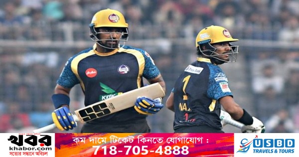 রান তাড়ায় নেমে ভালো শুরু এনে দেন ঢাকার দুই ওপেনার নাঈম শেখ ও ধানুশকা গুনাথিলাকা। পাওয়ার প্লের ৬ ওভারে স্কোরবোর্ডে তোলেন ৫৬ রান। ৩ ছক্কা ও ৩ চারের সুবাদে নাঈমের রান সে সময় ৪০। পাওয়ার প্লে'র পর অপরপ্রান্তে থাকা গুনাথিলাকাও হাত খুলে খেলতে শুরু করেন। তবে ফিফটি পেয়ে যান নাঈম। অর্ধশতক করে ৫২ রানে ফেরেন এই বাঁহাতি। ৪০ বলের ইনিংসটি সাজান ৩টি করে চার-ছয়ে।