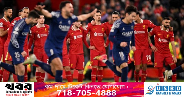 পুরো অ্যানফিল্ড তখন একেবারে স্তব্ধ। মাঠে পিএসজির ফুটবলাররা উল্লাস করছিলো, আর গ্যালারি থেকে নীরবে প্রস্থান করছিলো লিভারপুল সমর্থকরা। কারণ, টাইব্রেকারে লিভারপুলকে ১-৪ গোলে হারিয়ে উয়েফা চ্যাম্পিয়ন্সশিপের কোয়ার্টার ফাইনালে উঠে গেছে ফরাসী ক্লাব পিএসজি।