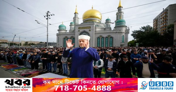 রাশিয়ার রাজধানী মস্কোর একটি মসজিদে মঙ্গলবার ঈদুল আজহার নামাজ আদায় করছেন মুসলিমরা।