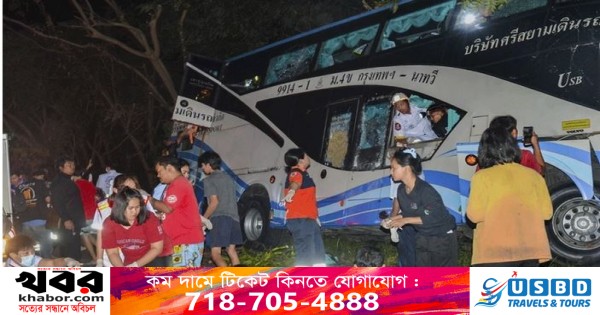 একজন স্থানীয় পুলিশ কর্মকর্তা জানিয়েছেন, দুর্ঘটনার সময় বাসে তখন ৪৯ জন যাত্রী ছিল। বাসটি রাস্তা থেকে ছিটকে গিয়ে হাট ওয়ানাকর্ন ন্যাশনাল পার্কের কাছে একটি গাছে ধাক্কা দেয়। দেশটির হুয়ে ইয়াং থানার সুপারিনটেনডেন্ট কর্নেল উইরাপাট কেতেসা বলেছেন, ‘আমরা ধারণা করছি চালক হয়তো ঘুমিয়ে পড়েছিল।’ তিনি আরো বলেন, দুর্ঘটনা থেকে চালক বেঁচে গেছে।