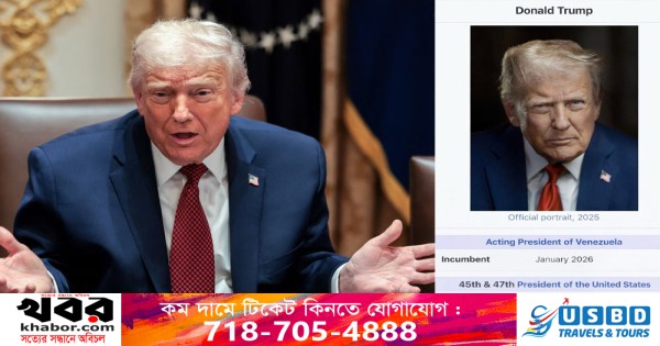 নিজেকে ভেনেজুয়েলার ভারপ্রাপ্ত প্রেসিডেন্ট ঘোষণা করেছেন মার্কিন প্রেসিডেন্ট ডোনাল্ড ট্রাম্প। নিজের সামাজিক যোগাযোগমাধ্যম ট্রুথ সোশ্যালে এই ঘোষণা দিয়েছেন তিনি।