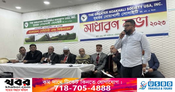 নিউইয়র্কে বৃহত্তর নোয়াখালী সোসাইটির সাধারণ সভা অনুষ্ঠিত হয়েছিল গত ২৬ জানুয়ারি কনিআইল্যান্ডের একটি বড় অডিটোরিয়ামে। সংগঠনের সভাপতি নাজমুল হাসান মানিকের সভাপতিত্বে এবং সাধারণ সম্পাদক ইউছুপ জসীমের পরিচালনায় সাধারণ সভায় মঞ্চে উপবিষ্ট ছিলেন বাংলাদেশ সোসাইটির সভাপতি আব্দুর রব মিয়া, সাবেক সাধারণ সম্পাদক জাহিদ মিন্টু, সিনিয়র ভাইস প্রেসিডেন্ট আবুল বাশার, সহ-সভাপতি তাজু মিয়া, ট্রাস্টি বোর্ডের চেয়ারম্যান হাজি মফিজুর রহমান, সদস্য খোকন মোশাররফ, রফিকুল ইসলাম ভূইয়া, সালামত উল্যাহ, রমেশ চন্দ্র মজুমদার, প্রফেসর করিম, আবু নাসের প্রমুখ।
