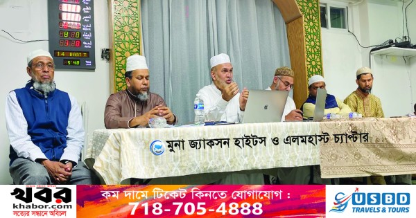 ঈমানদার বিপদ-আপদে ধৈয্যহারা আর আনন্দ সংবাদে আল্লাহকে ভূলে যাওয়ার কোন সুযোগ নেই। সর্বাবস্থায় আল্লাহকে স্মরণ ও আখেরাতের চিন্তার লালন করতে হবে। গত ১০ অক্টোবর উডসাইডে মাদানী মসজিদে কিয়ামুল লাইল অনুষ্ঠানে এসব কথা বলেন মুনার ন্যাশনাল প্রেসিডেন্ট হারুন অর রশীদ। তিনি বলেন, দুনিয়া জীবন খুবই সীমিত, মানুষের আসল স্থান হলো আখেরাত। আখেরাতের অনন্ত জীবন সুন্দর ও স্বার্থক করার লক্ষ্যে দুনিয়াতে অনৈতিক কাজ পরিহার করা প্রত্যেক মুসলমানের ঈমানী দায়িত্ব। মুনা জ্যাকসন হাইটস ও এলমহাস্ট চ্যাপ্টারের যৌথ আয়োজনে অনুষ্ঠানের সভাপতিত্ব করেন মমিনুল ইসলাম মজুমদার, পরিচালনা করেন কায়কোবাদ কবির। বিষয় ভিত্তিক আলোচনা করেন মুনার ন্যাশনাল মজলিশ শুরার সদস্য মাওলানা তোয়াহা আমিন খান। মঞ্চে উপস্থিত ছিলেন নাসির উদ্দিন আহমেদ ও ইকবাল হোসেন।