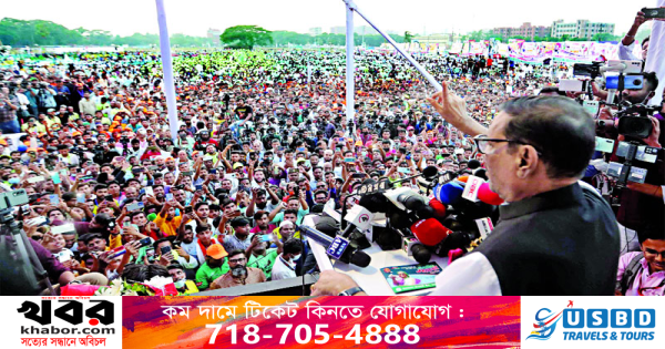 বিএনপির বিভাগীয় সমাবেশগুলোতে কাঙ্ক্ষিত লোকসমাগম হচ্ছে না দাবি করে ওবায়দুল কাদের বলেন, ‘রংপুরে একটা সমাবেশ করেছে। ফখরুল সাহেব, কত লোক হলো? চট্টগ্রামে লাখের কাছাকাছি, ময়মনসিংহে ৩০ (হাজার), খুলনায় ৩০ (হাজার), রংপুরে কত করলেন? ৫০...৬০ (হাজার)? আর ঢাকা জেলা আওয়ামী লীগের সম্মেলন হচ্ছে। খোঁজ নেন কত লোক হয়েছে। টিভিতে দেখেন। ঢাকার ছবিও দেখুন, রংপুরের ছবিও দেখুন। ’
