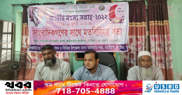 নাটোর প্রতিনিধি: নাটোরের বড়াইগ্রামে জাতীয় মৎস্য সপ্তাহ উপলক্ষে সাংবাদিকদের সাথে মত বিনিময় করেছে উপজেলা মৎস্য দপ্তর। শনিবার সকালে কার্যালয় কক্ষে সিনিয়র উপজেলা মৎস্য কর্মকর্তা আব্দুল হালিমের সভাপতিত্বে এই মত বিনিময় সভায় ২৩ থেকে ২৯ জুলাই মৎস্য সপ্তাহ উদযাপন উপলক্ষে সরকারের গৃহীত নানামুখী কর্মসূচি পালন করার তথ্য পেশ করা হয়। এ সময় বক্তব্য রাখেন,