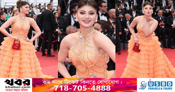উৎসবের প্রথম দিন গোলাপি গাউনে সেজেছিলেন উর্বশী। গলায় পরেছিলেন সরীসৃপের আদলে তৈরি গয়না। যা নিয়ে আলোচনা কম হয়নি। দ্বিতীয় দিনে কমলা রঙের একটি গাউন পরে কানের লাল গালিচায় এসেছিলেন তিনি।