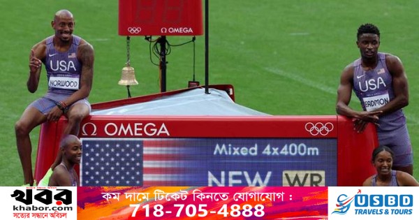 যুক্তরাষ্ট্রের অ্যাথলেটরা ট্র্যাকে ঝড় তুলে ৪ গুণিতক ৪০০ মিটার রিলে শেষ করেন ৩ মিনিট ০৭.৪১ সেকেন্ডে। আর তাতেই পূর্বের রেকর্ড যায় ভেঙে। আগের রেকর্ডটিও ছিল যুক্তরাষ্ট্রেরই।