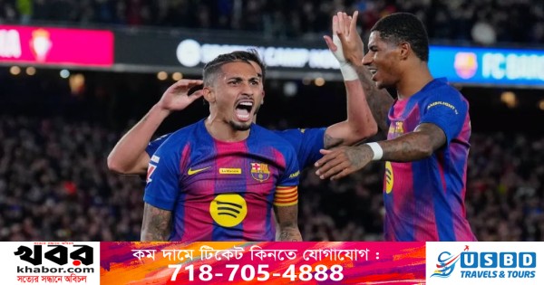 এরপর ৮৬ মিনিটে আবার গোল করেন রাফিনিয়া। একটি ক্রস ডিফ্লেক্ট হয়ে তার সামনে এলে পিছনের পোস্টে সহজ ট্যাপ-ইন করেন তিনি। এতে নিশ্চিত হয় বার্সেলোনার জয়।