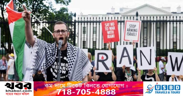 ইসরায়েল এবং ইরান সংঘাতে যুক্তরাষ্ট্রের সম্পৃক্ততার বিরোধিতা করে হোয়াইট হাউজের সামনে বিক্ষোভ চলছে। ট্রাম্প প্রশাসন এই সংঘাতে আরও গভীরভাবে জড়িয়ে পড়ছে যার বিরোধিতা করেছেন বিক্ষোভকারীরা। তারা আহ্বান জানিয়েছেন যে, মার্কিন প্রশাসন যেন এই সংঘাতে আরও গভীরভাবে সম্পৃক্ত না হয়।