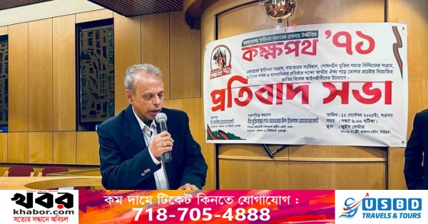 প্রিয় মাতৃভূমির বর্তমান অবস্থার পরিপ্রেক্ষিতে মুক্তিযুদ্ধ, ৭২ র সংবিধান, আইনের শাসনের প্রতিষ্ঠার ও আদালত এবং আইনজীবীদের মর্যাদা রক্ষার্থে- কক্ষপথ -৭১ নিউইর্য়ক, যুক্তরাষ্ট্রের উদ‍্যদে এক প্রতিবাদ সমাবেশ আনুষ্ঠিত হয় গত ১২ সেপ্টেম্বর ২০২৫,শুক্রবার, সন্ধ্যা  সাড়ে ৭টায়  নিউইয়র্কের বাংগালি অধ‍্যশিত জুইস সেন্টার । ।খবর আইবিএননিউজ ।বাংলাদেশের স্বাধীনতা সংগ্রামের চেতনায় উজ্জীবিত “ কক্ষপথ’৭১” এর প্রবাসীসআইনজীদের এই  প্রতিবাদ সমাবেশের  কক্ষপথ-৭১ মূল দাবী, একাত্তরের স্বাধীনতা সংগ্রাম, বায়াত্তরের সংবিধান সুরক্ষা,শোষন মুক্ত সমাজ প্রতিষ্টা আইনের শাসন ও মানবাধিকার প্রতিষ্টা, বাংলাদেশ সংবিধানের মূলনীতি,বাংগালি জাতীয়তাবাদ, সমাজতন্ত্র,গনতন্ত্র ও ধর্মনিরপেক্ষতা পুন- প্রতিষ্ঠার লক্ষ্যে উক্ত প্রতিবাদ সভায় সভাপত্বি করেন সংগঠনের আহ্বায়ক বীর মুক্তিযোব্ধা অ্যাডভোকেট শেখ আখতার উল ইসলাম এবং  যুগ্ম আহ্বায়ক অ্যাডভোকেট মিয়া জাকির এর পরিচালনায় অনুষ্ঠিত হয় ।