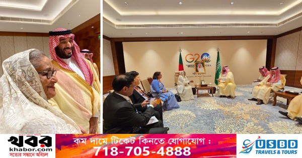 পররাষ্ট্র মন্ত্রণালয় জানায়, আজ সকালে নয়া দিল্লিতে জি-২০ শীর্ষ সম্মেলনের ফাঁকে সৌদি যুবরাজ ও প্রধানমন্ত্রীর দ্বিপক্ষীয় বৈঠক অত্যন্ত ফলপ্রসূ হয়েছে। যুবরাজ সালমান সাম্প্রতিক বছরগুলোতে বাংলাদেশে উল্লেখযোগ্য আর্থসামাজিক উন্নয়নে প্রধানমন্ত্রীর নেতৃত্বের প্রশংসা করেন।