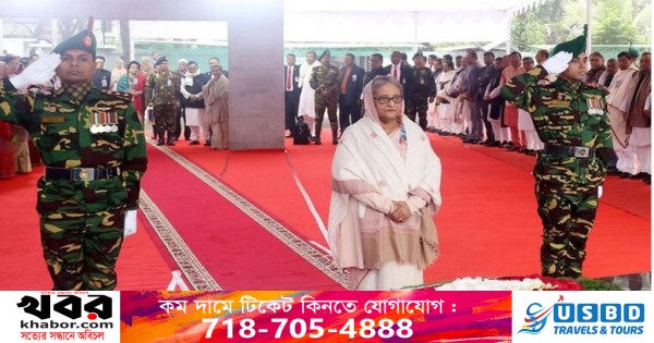 এরপর কিছুক্ষণ নীরবে দাঁড়িয়ে স্মরণ করেন প্রধানমন্ত্রী। পরে কেন্দ্রীয় নেতাদের সঙ্গে নিয়ে দলের পক্ষে বঙ্গবন্ধুর প্রতিকৃতিতে আরও একটি পুষ্পস্তবক অর্পণ করেন বাংলাদেশ আওয়ামী লীগের সভাপতি শেখ হাসিনা।