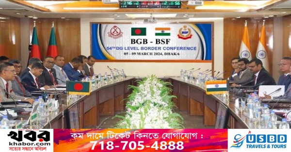 বর্ডার গার্ড বাংলাদেশ (বিজিবি) ও ভারতের বর্ডার সিকিউরিটি ফোর্সের (বিএসএফ) মধ্যে মহাপরিচালক পর্যায়ের ৫৪তম সীমান্ত সম্মেলন (৫-৯ মার্চ) শুরু হয়েছে। আজ মঙ্গলবার (৫ মার্চ) দুপুরে রাজধানী ঢাকার পিলখানাস্থ বিজিবি সদর দপ্তরের সম্মেলনকক্ষে এই সম্মেলন শুরু হয়েছে। সম্মেলনে বিজিবি মহাপরিচালক মেজর জেনারেল মোহাম্মদ আশরাফুজ্জামান সিদ্দিকীর নেতৃত্বে ১৬ সদস্যের বাংলাদেশ প্রতিনিধিদল অংশগ্রহণ করেছে। বিজিবির জনসংযোগ কর্মকর্তা মো. শরীফুল ইসলামের পাঠানো এক প্রেস বিজ্ঞপ্তিতে এসব তথ্য জানানো হয়।