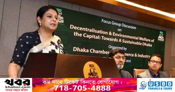 আজ শনিবার ঢাকার মতিঝিলে ঢাকা চেম্বার অব কমার্স অ্যান্ড ইন্ডাস্ট্রি (ডিসিসিআই) অডিটরিয়ামে আয়োজিত ফোকাস গ্রুপ ডিসকাশন (এফজিডি) শীর্ষক ‘ডি-সেন্ট্রালাইজেশন অ্যান্ড এনভায়রনমেন্টাল ওয়েলফেয়ার অব দ্য ক্যাপিটাল : টুয়ার্ডস আ সাসটেইনেবল ঢাকা’ অনুষ্ঠানে প্রধান অতিথির বক্তব্যে তিনি এ কথা বলেন।
