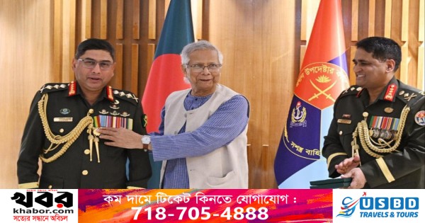 সশস্ত্র বাহিনী দিবস উপলক্ষে সেনাবাহিনী প্রধান জেনারেল ওয়াকার-উজ-জামানকে ‘সেনাবাহিনী পদক’ দিয়েছেন প্রধান উপদেষ্টা অধ্যাপক মুহাম্মদ ইউনূস।