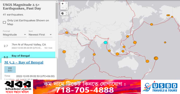 ঢাকা: রাজধানী ঢাকাসহ দেশের বিভিন্ন স্থানে ৫ দশমিক ২ মাত্রার ভূমিকম্প অনুভূত হয়েছে। মার্কিন ভূতাত্ত্বিক জরিপ সংস্থার (ইউএসজিএস) ওয়েবসাইট থেকে এ তথ্য পাওয়া গেছে।