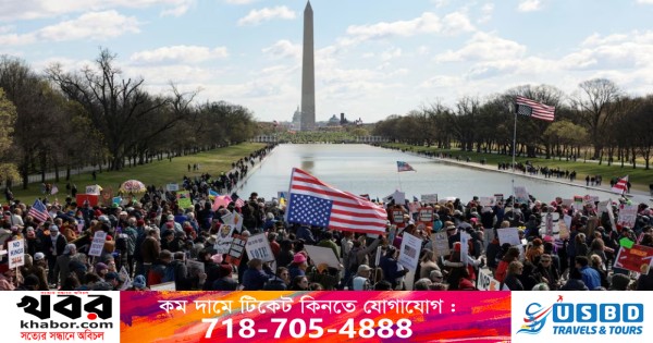 বিক্ষোভকারীরা শনিবার (২৮ মার্চ) নিউ ইয়র্ক, ওয়াশিংটন ডিসি, লস অ্যাঞ্জেলেসসহ যুক্তরাষ্ট্রের প্রায় প্রতিটি বড় শহরে সমবেত হন।