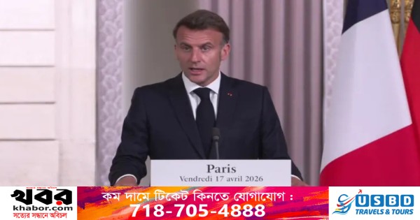 বিবিসির প্রতিবেদনে বলা হয়, ম্যাখোঁ সাম্প্রতিক কয়েকটি উদ্যোগকে স্বাগত জানান, যার মধ্যে রয়েছে ইরান ও যুক্তরাষ্ট্রের মধ্যে যুদ্ধবিরতি, লেবাননে সাম্প্রতিক যুদ্ধবিরতি—যা ‘সম্পূর্ণভাবে মেনে চলতে হবে’—এবং হরমুজ প্রণালি পুনরায় খুলে দেওয়া।
