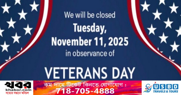ভেটের্যান্স ডে আমেরিকায় ফেডারেল হলিডে। এদিন সব স্কুল কলেজ. ব্যাংক, সরকারি অফিস আদালত বন্ধ থাকবে।
