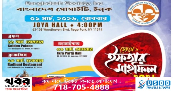 নিউইয়র্কের বাংলাদেশ সোসাইটি ইনক’র ইফতার ও দোয়া মাহফিল ২০২৬ এর সময় সূচি।
