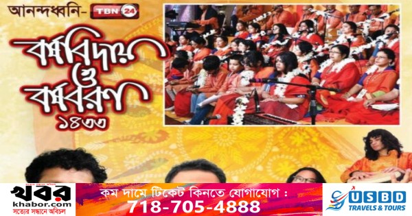 নিউইয়র্কে আনন্দরধ্বনি ইনক. নিউইয়র্ক এর উদ্যোগে অনুষ্ঠিত হতে যাচ্ছে বর্ণাঢ্য বর্ষবিদায় ও বর্ষবরণ অনুষ্ঠান। আগামী ১২ এপ্রিল রোববার বিকাল ৫টা থেকে রাত ৯টা পর্যন্ত কুইন্সের কুইন্সবোরো পারফর্মিং আর্টস সেন্টার (QPAC)-এ প্রবাসী বাংলাদেশিদের এ আয়োজন অনুষ্ঠিত হবে।